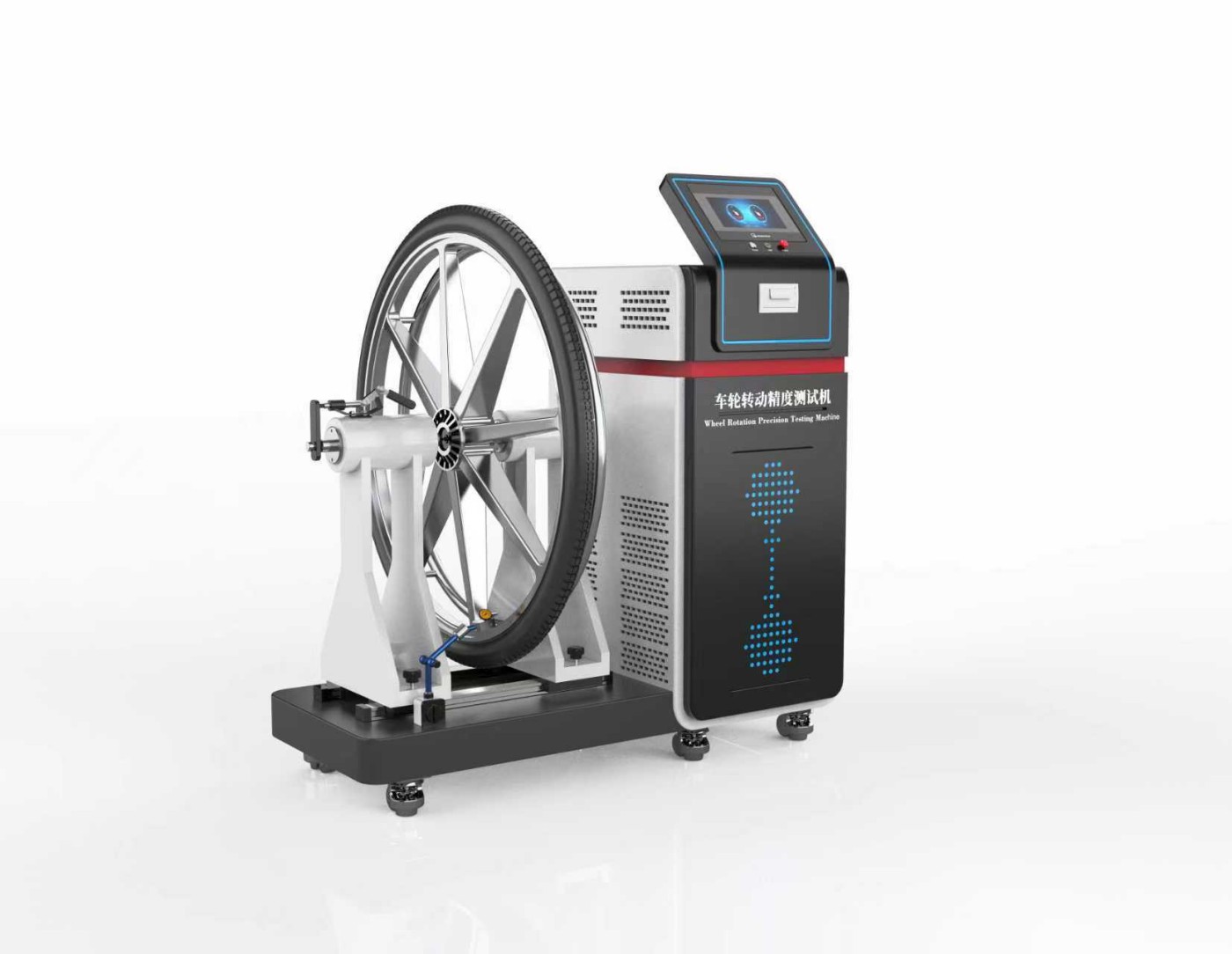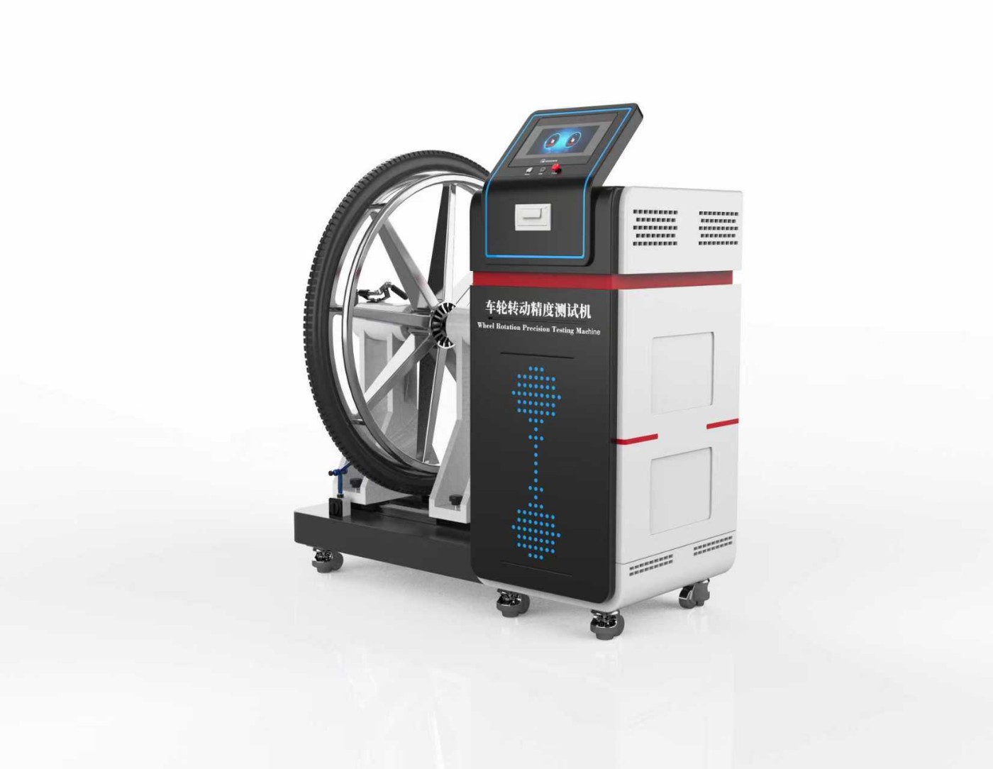 车轮转动精度测试机是一种用于测量车轮径向圆跳动和轴向圆跳动的专业设备,广泛应用于自行车、摩托车、汽车等车轮制造与质量检测领域。其核心功能是通过高精度测量评估车轮在转动过程中的平稳性和对称性,确保车轮符合相关标准要求。